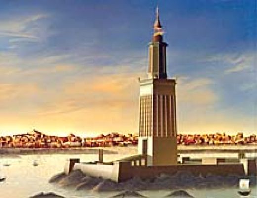Lighthouse of Alexandria stood about 384 feet in harbor. The fires burn at night and bronze mirror reflect the sunlight.