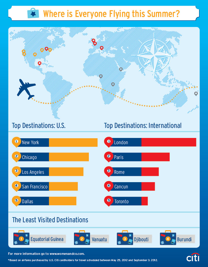 This summer is going to be very hot or very cold depending on what you prefer and where are you going on vacations. In the travel infographic below we can see the top US and international destinations for this summer but also the least prefered.