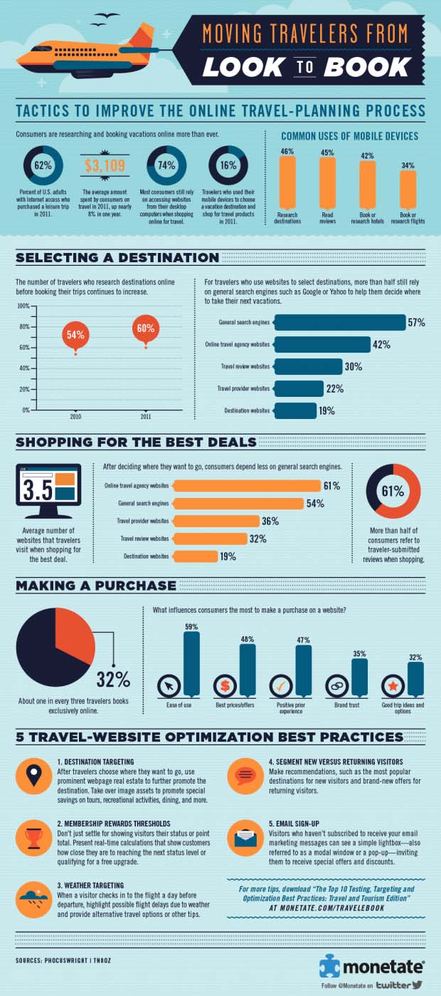 More and more people are using the Internet either for information about their trips or to book thei vacations online. In this travel infographic we can see the best tactics to find the best deals online and make your vacations even better.