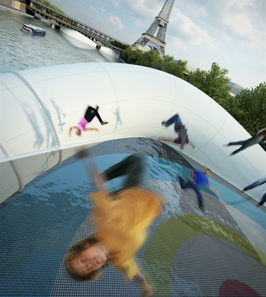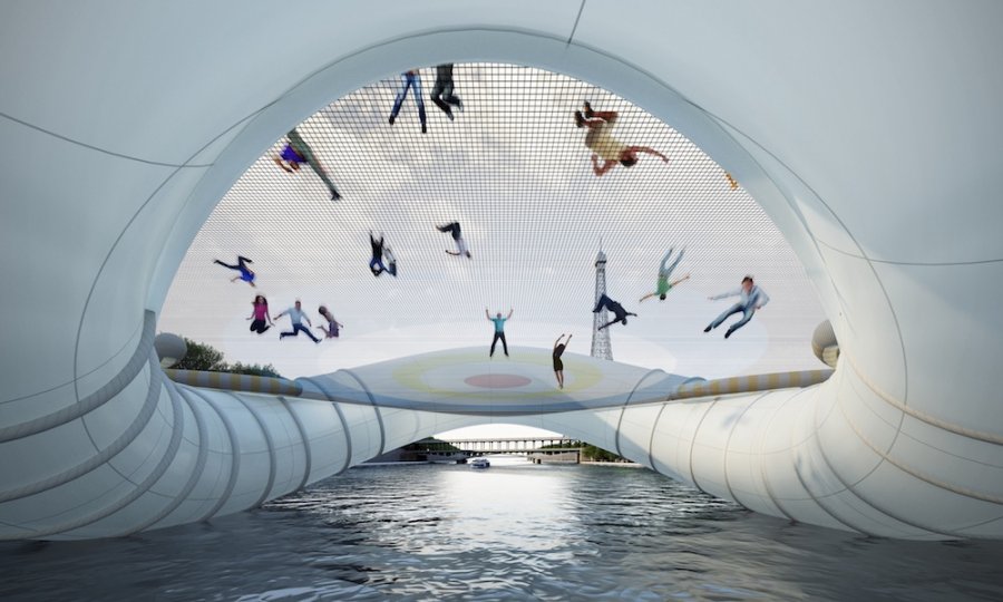 This project was made by Atelier Zündel Cristea, a French architect who brought to life the idea of a new attraction that will amaze people for years. It is an amusement park site planted on River Seine and called the Trampoline Bridge bucause that it is, apparently inflatable with macro network for a playful ride from one bank to another and certainly alternative than the existing ones. The bridge PVC is participating in a competition of contemporary design of bridges, at least according to the comments on facebook. The bridge was opened with a warm welcome by the people of the city maybe because moving in the city of lovers lately, seems to have become a bit chaotic cause of the traffic and perhaps this attractive solution could take the stress away.