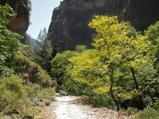 On the island of Crete is one of the highest solid rock walls around the world, the Samaria Gorge, without comparing with the grand canyon of course, with walls that rise up to 700 meters high. They form a long narrow corridor that simulates the stroke of a dry river. Today it is covered by only 16 miles of gray rocks to lead you up to the shore of the sea.