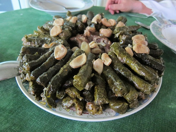 At meals resulting from predominantly Arab cuisine vegetables over meat and some items such as beef and lamb, yogurt, mint, thyme, tea, sesame, curry powder, saffron, turmeric , garlic, cinnamon or rice. In turn, one of the most famous dishes of typical Egyptian cuisine is Waraq the Enab, which is like a cooked rice in vine leaves.