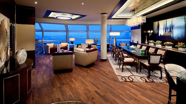 Reflection Suite has two double rooms and a panoramic terrace 18 sq.m. Furthermore, an open living and dining area for 10 people, while specific application via the iPad you can adjust the tilt of your bed. One of the most unique rooms of this suite is the diamond shaped, glass bathroom that extends to the edge of the ship. You do not have to worry about your look the time you take the shower because you have special smart windows that adapt to external conditions and sunlight, thereby protecting you from prying eyes. Prices start from £ 11,090 per person with air tickets for 10 nights cruise in the eastern Mediterranean, departing from Civitavecchia, Italy on June 13, 2014.