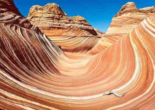 The Wave is an amazing rock formation in the border states of Arizona and Utah, USA. It is a particularly popular destination for those who love hiking and photography, as well as colorful wavy shapes formed by the rocks offer a unique spectacle. The Wave is made of sandstone, sedimentary rock composed mainly of sand, and aged about 190 million years.